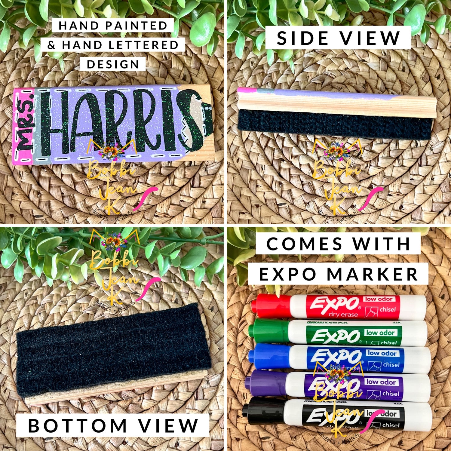 hand painted & hand lettered personalized dry erase erase + marker gifts sets